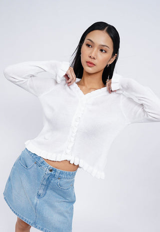 V-Neck Ruffle Knit Cardigan