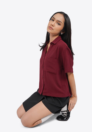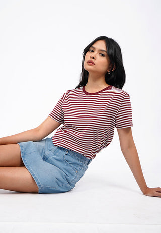 Short Sleeve Graphic Crop T-Shirt Maroon