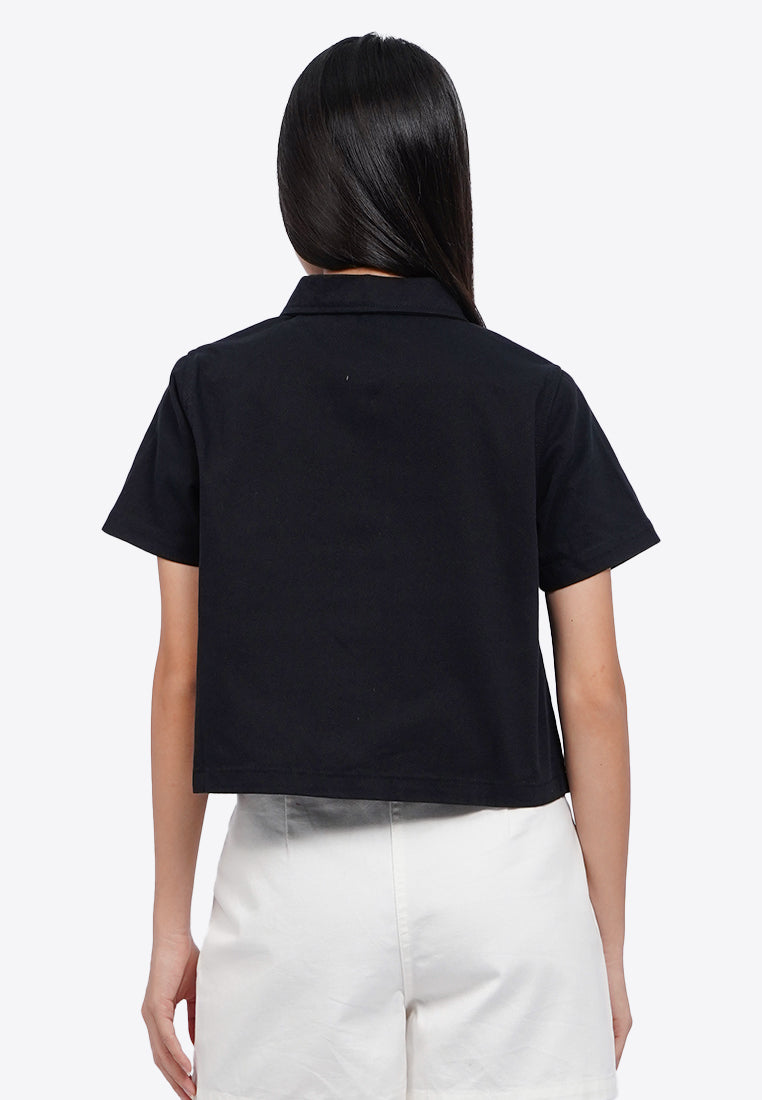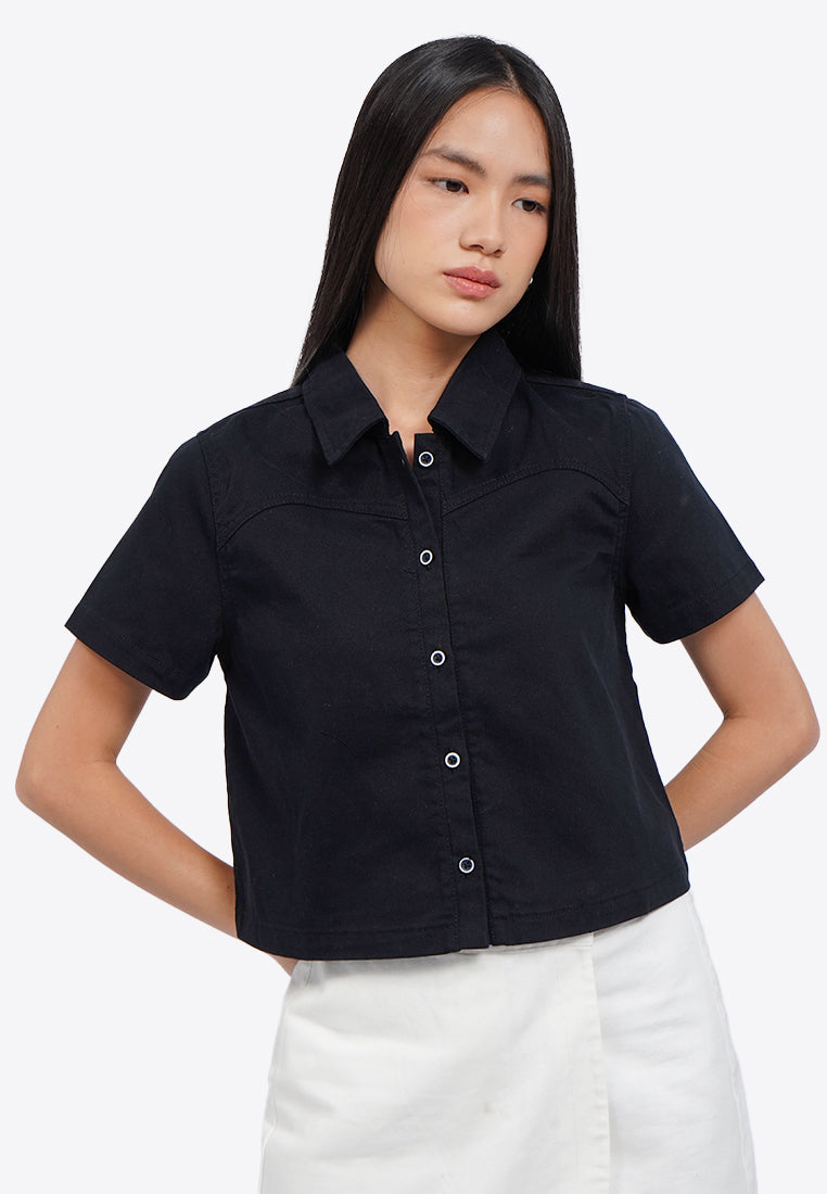 Curved Yolk Denim Blouse