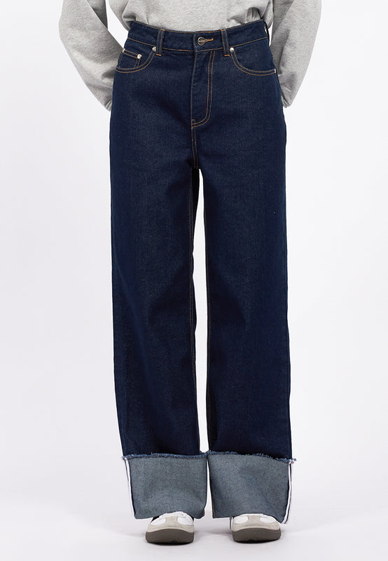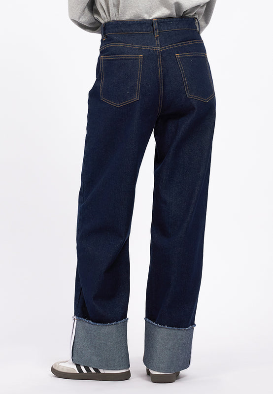 Rolled Up Wide Leg Denim Pants