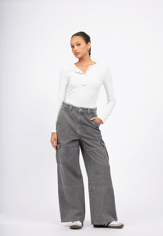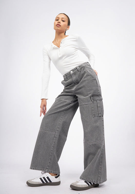 Straight Fit Cargo Denim Pants