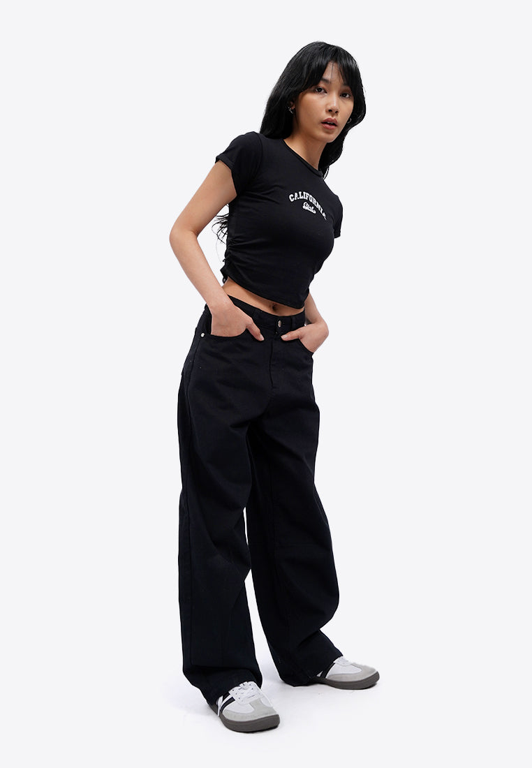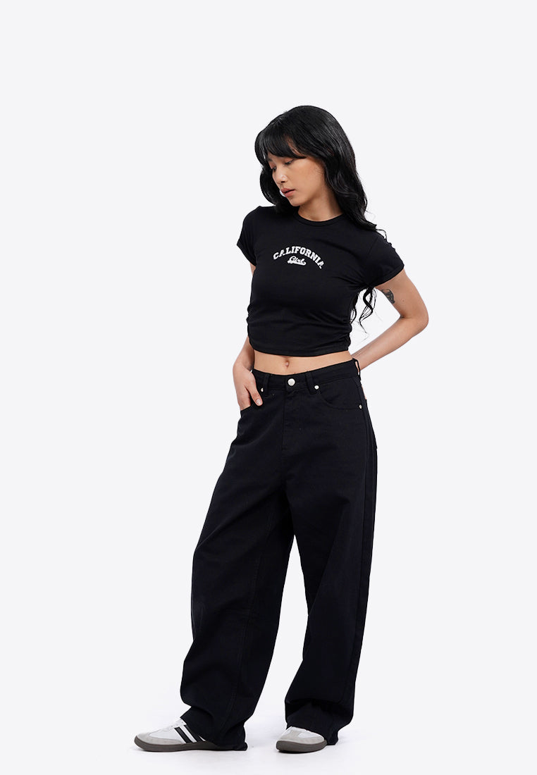 Mid Rise Barrel Denim Pants