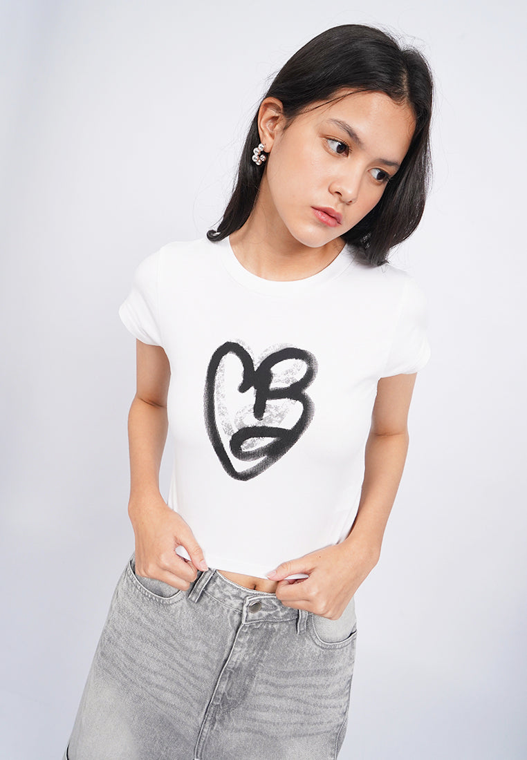 Cap Sleeve Fitted Graphic T-Shirt