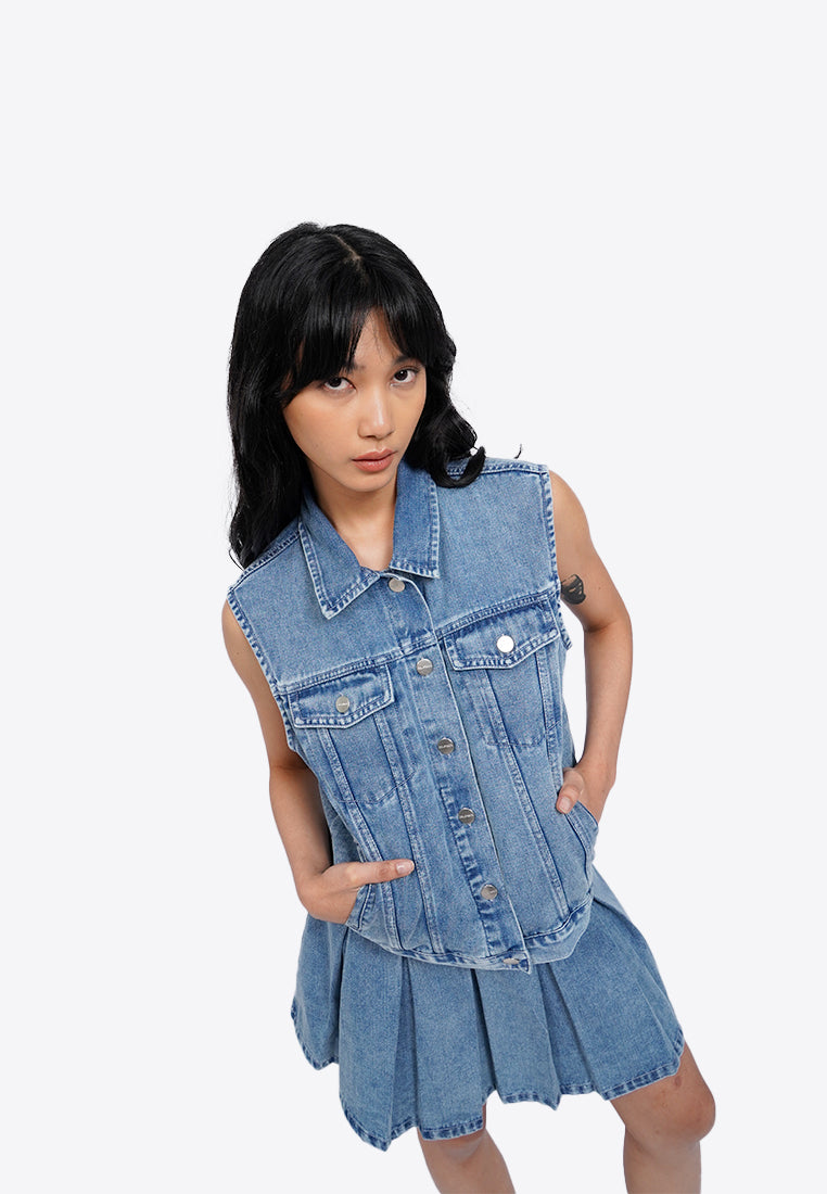 - Atasan denim tanpa lengan