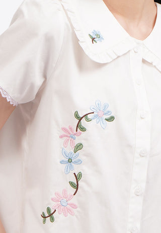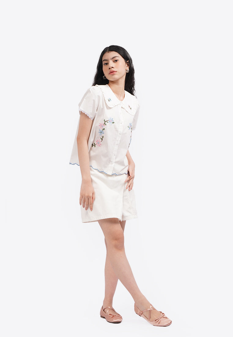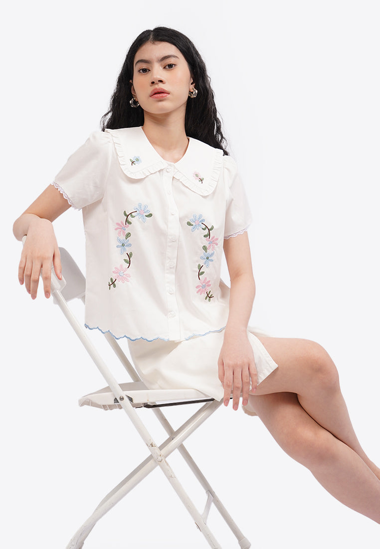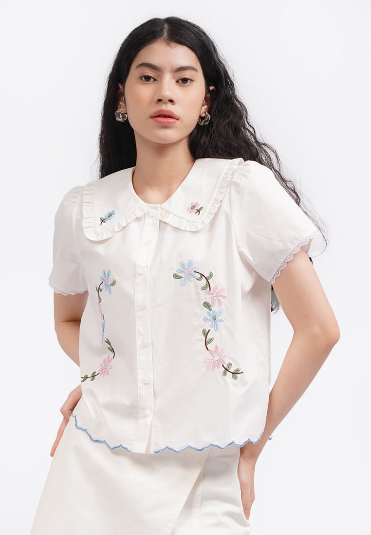 Floral Embroidery Shirt Off White