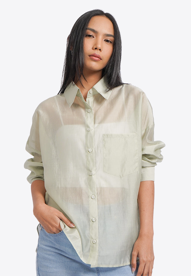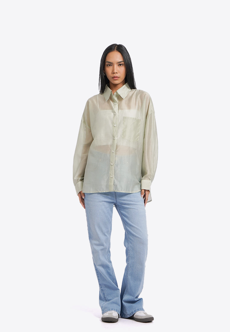 Oversized Long Sleeve Sheer Shirt