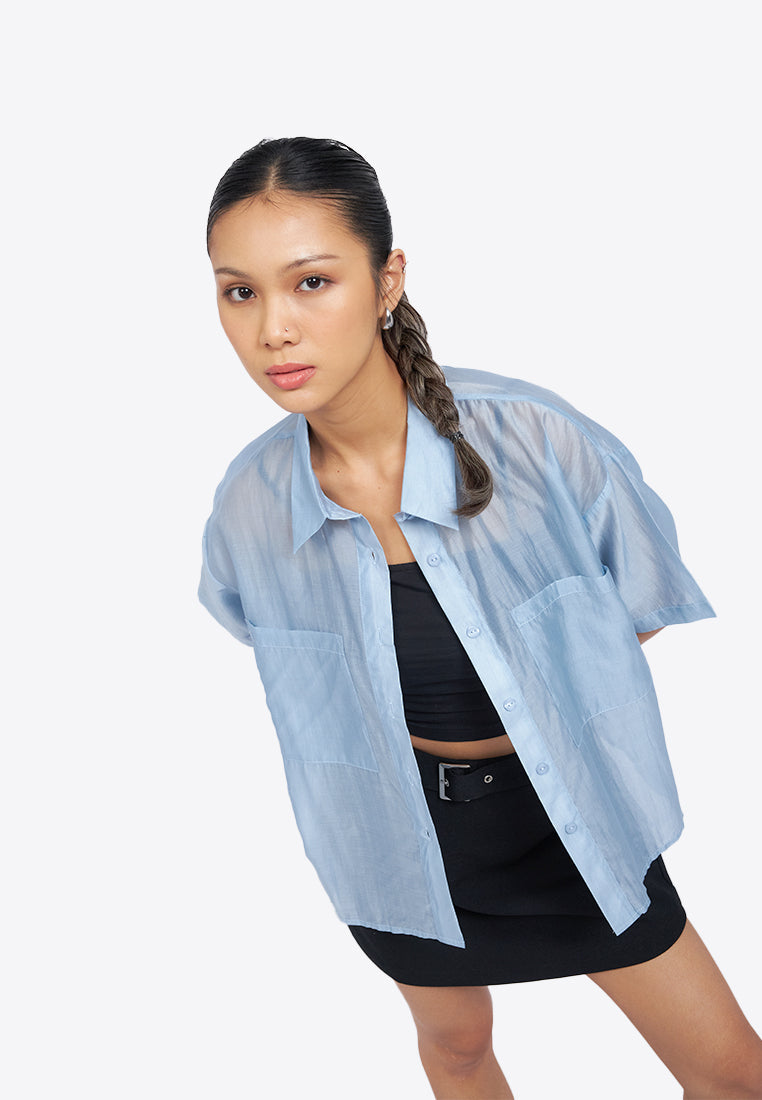 Oversized Short Sleeve Sheer Shirt