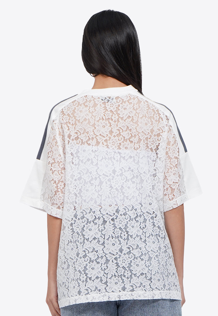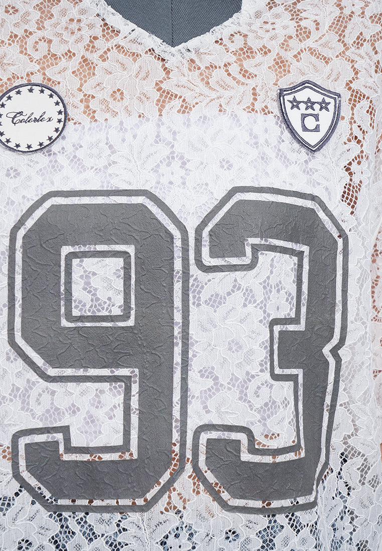 Oversized V-Neck Lace Jersey