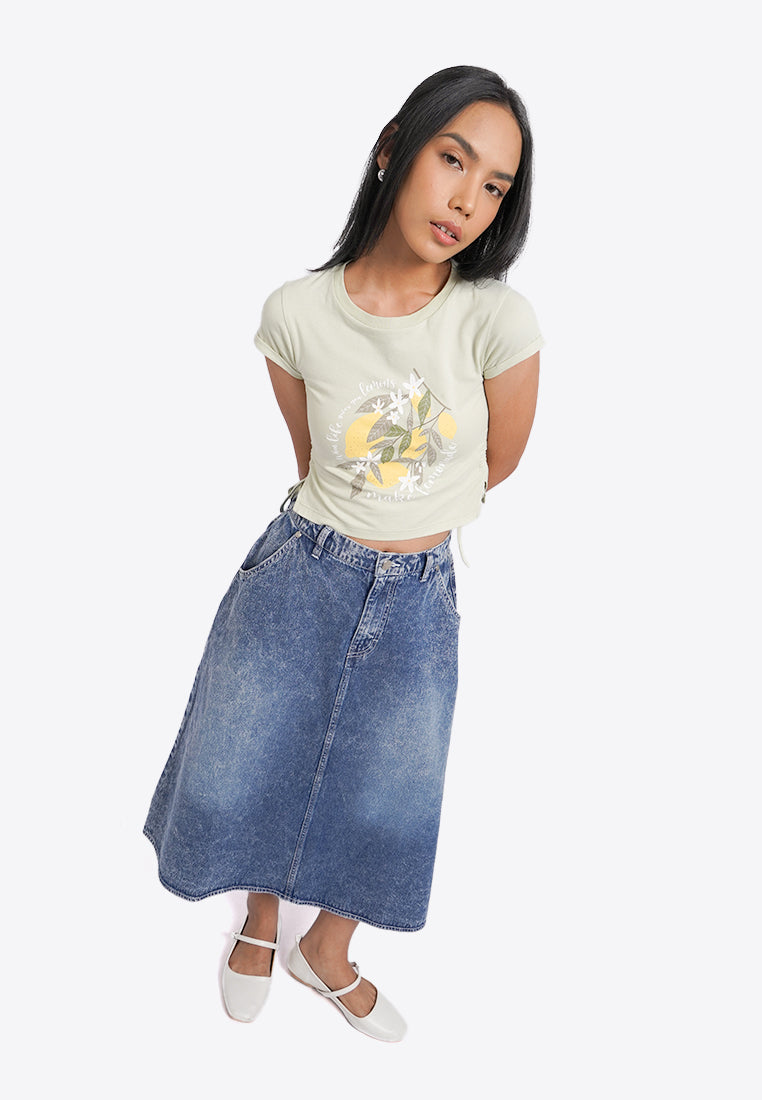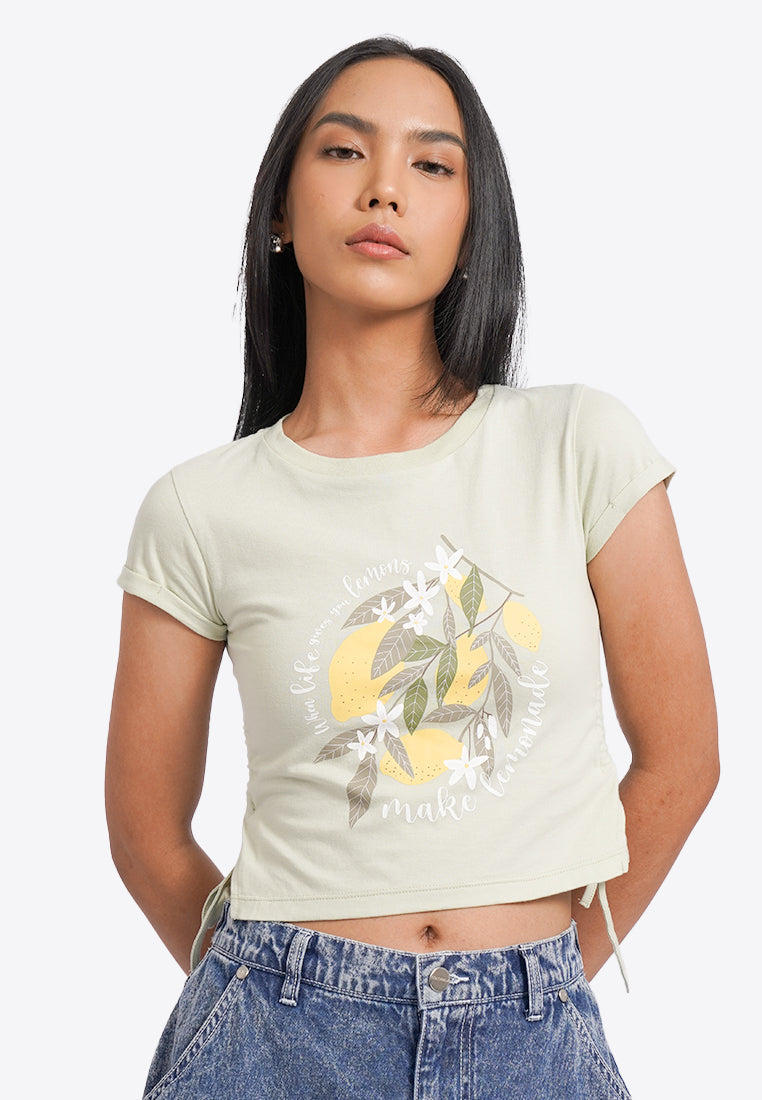 Fitted Graphic Top with Side Drawstring