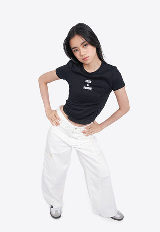 Side Gathered Graphic Crop Top