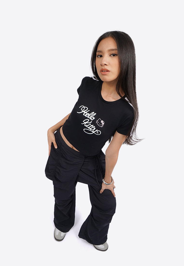 Hello Kitty Fitted Striped T-Shirt Black