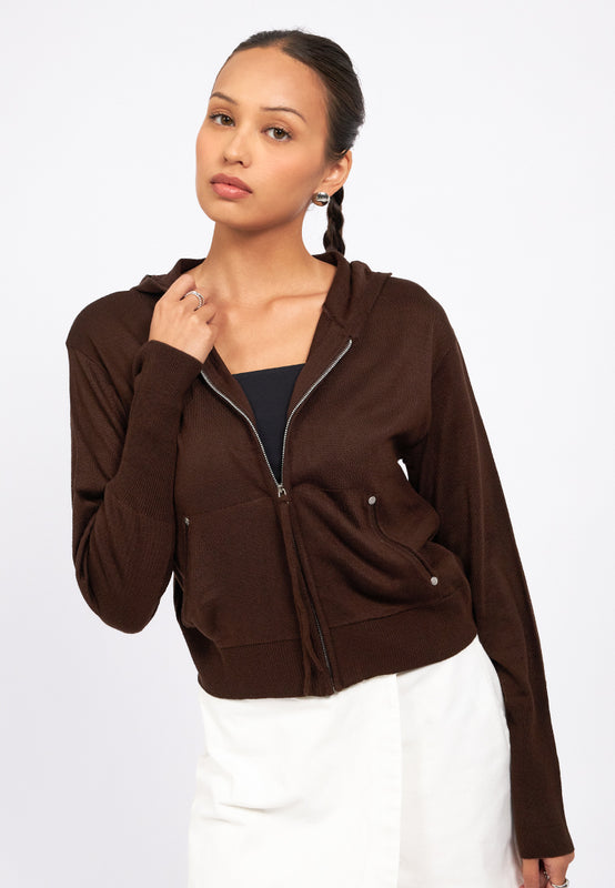 Long Sleeves Zip Up Knit Jacket