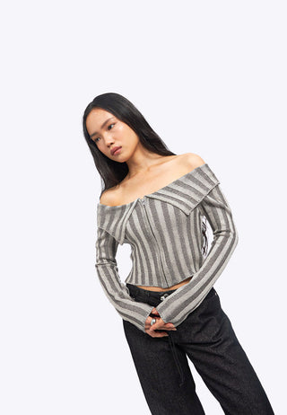 Off Shoulder Long Sleeve Textured Top