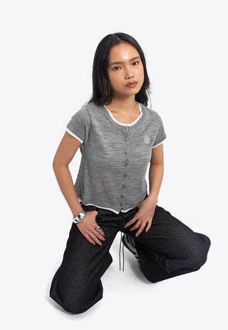 Contrast Details Short Sleeve Knit Top