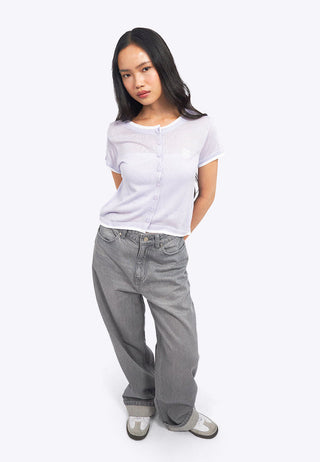 Collar Details Short Sleeve Knit Top