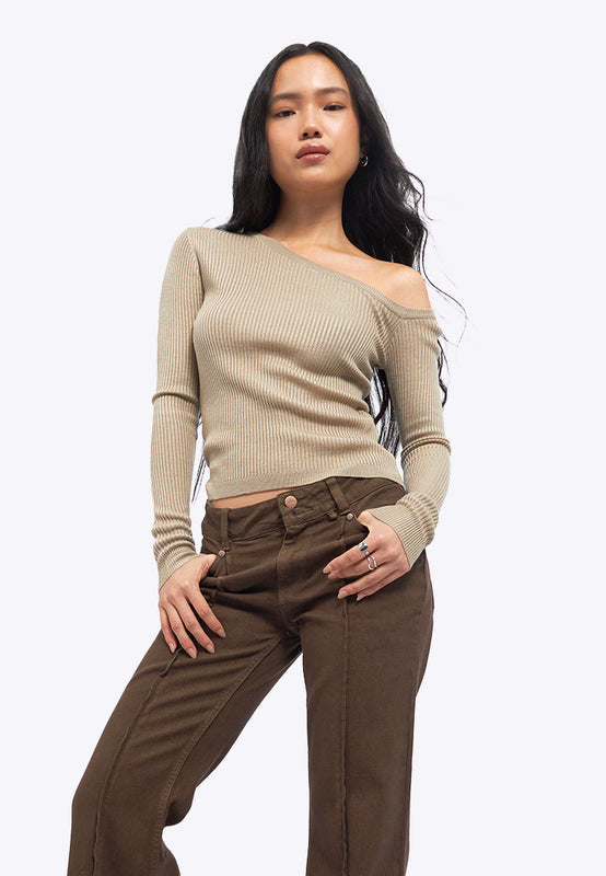 One Shoulder Long Sleeve Knit Top