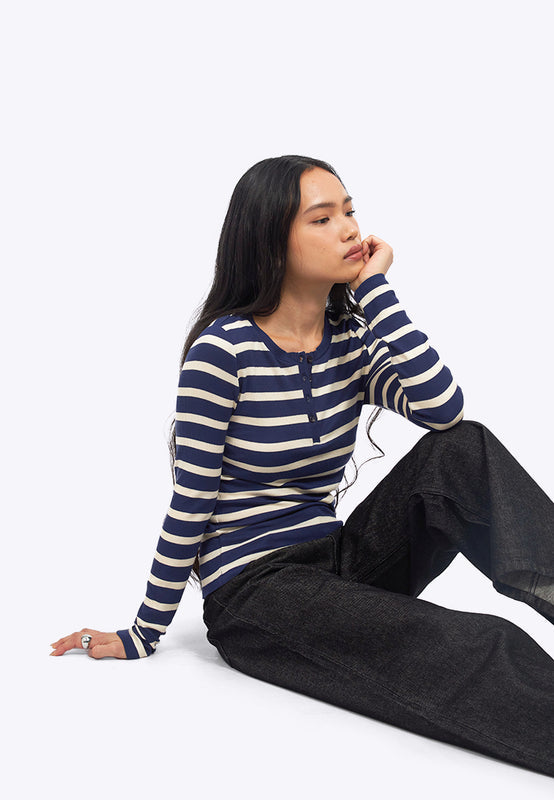 Long Sleeve Fitted Stripes Top