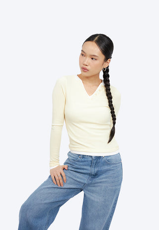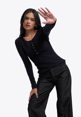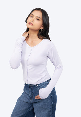 Button Up Long Sleeve Rib Top