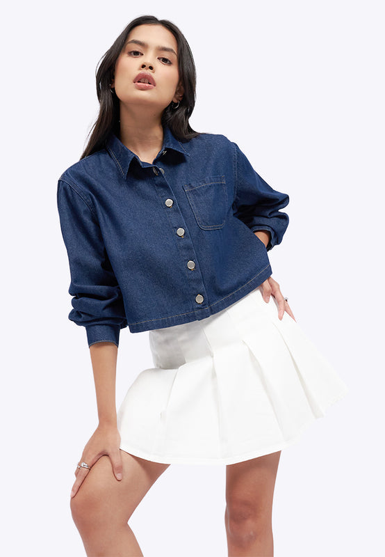 Long Sleeve Denim Shirt with Pocket