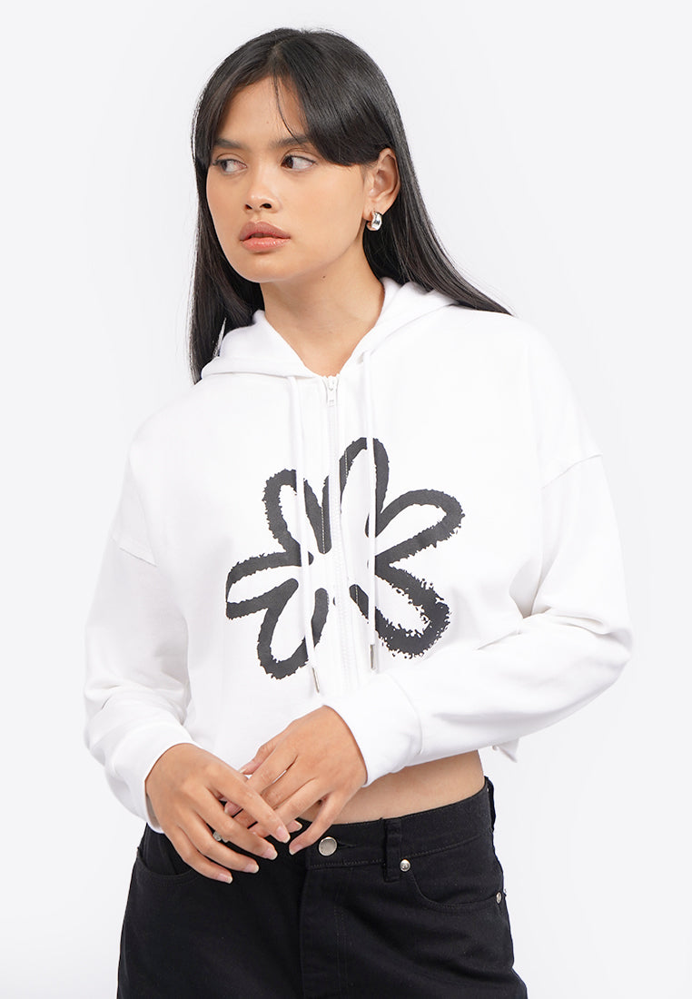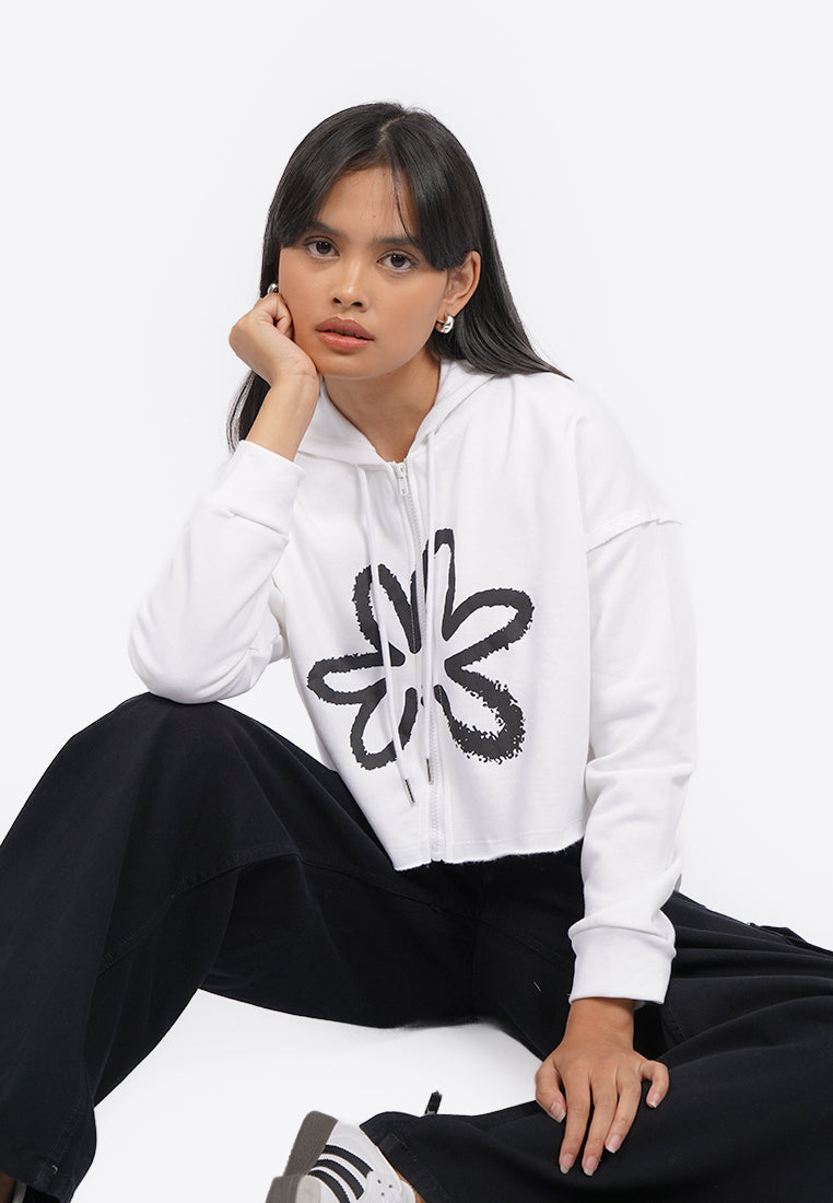 Graphic Crop Hoodie Jacket