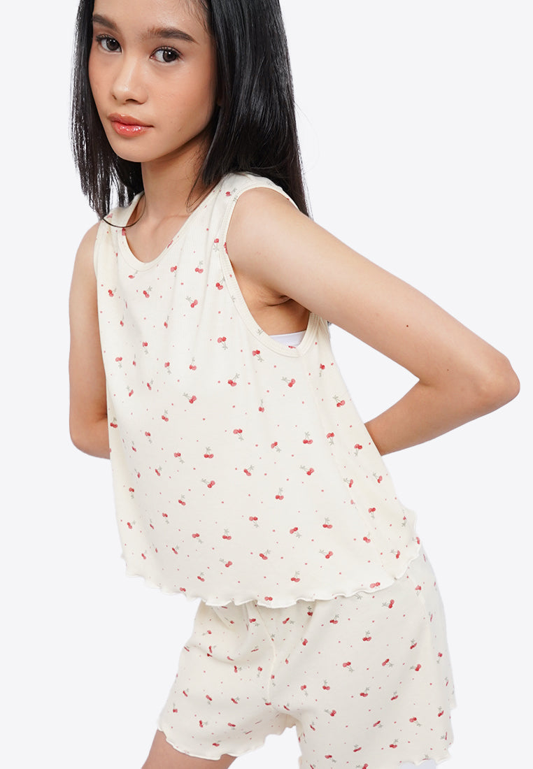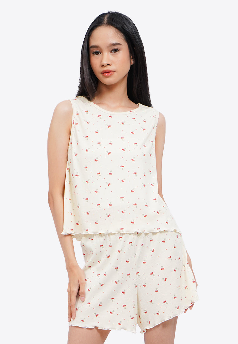 Printed Rib Sleeveless Pajama Set