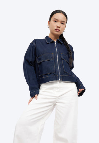 Double Pocket Zip Up Denim Jacket