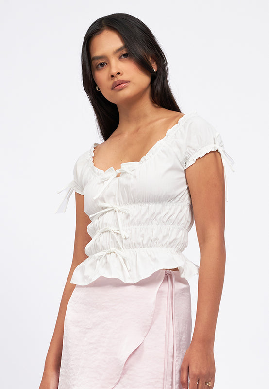 Puff Sleeves Ruched Top
