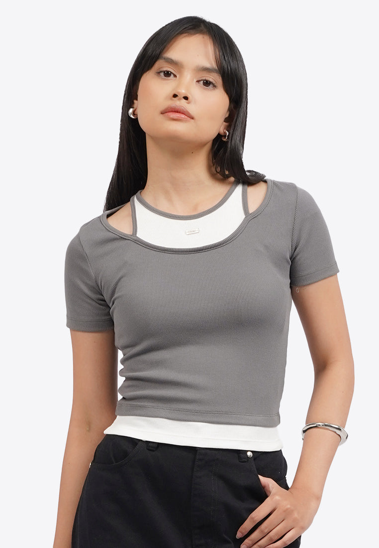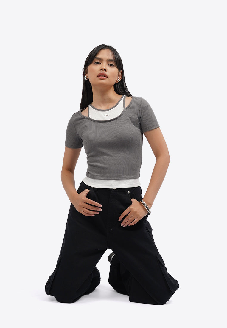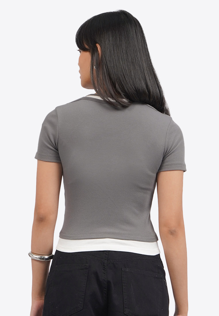 Double Layer Short Sleeve Crop Top