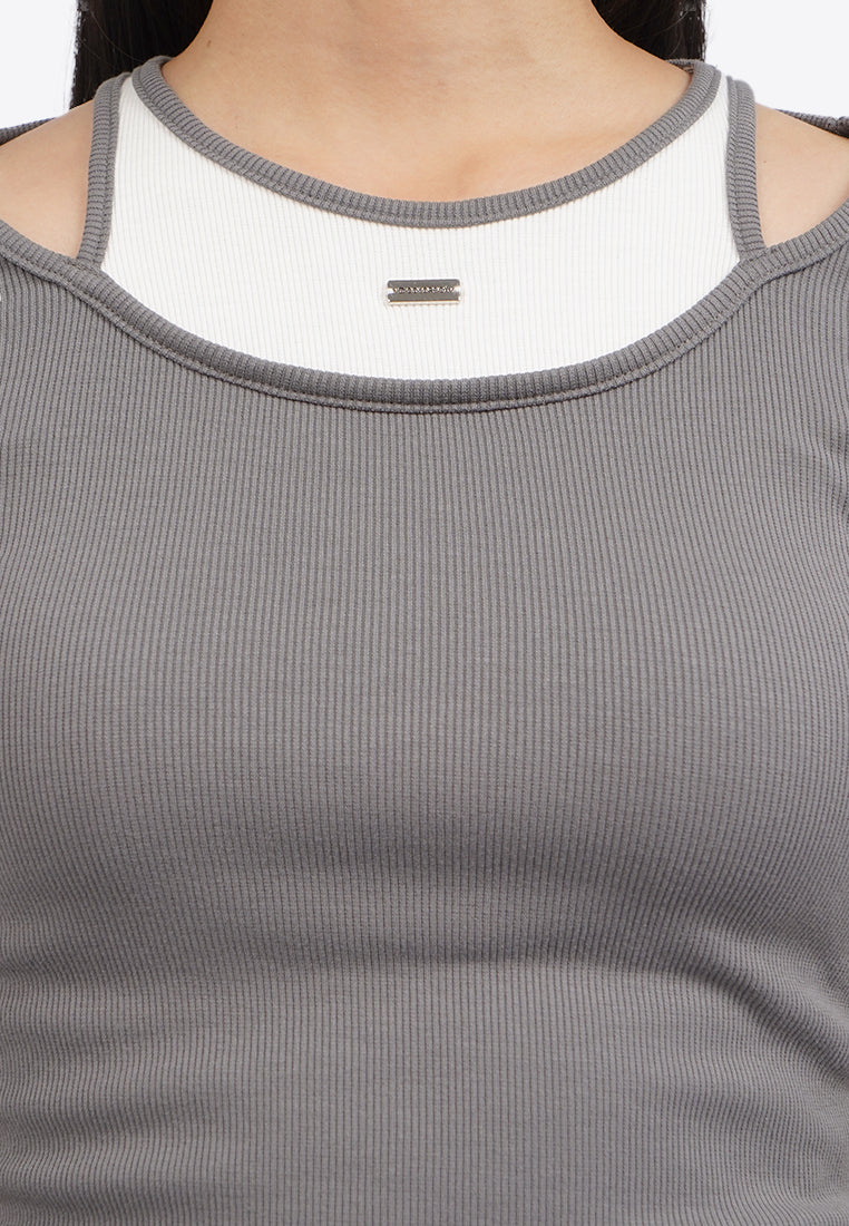 - Round neck with contrast double layer