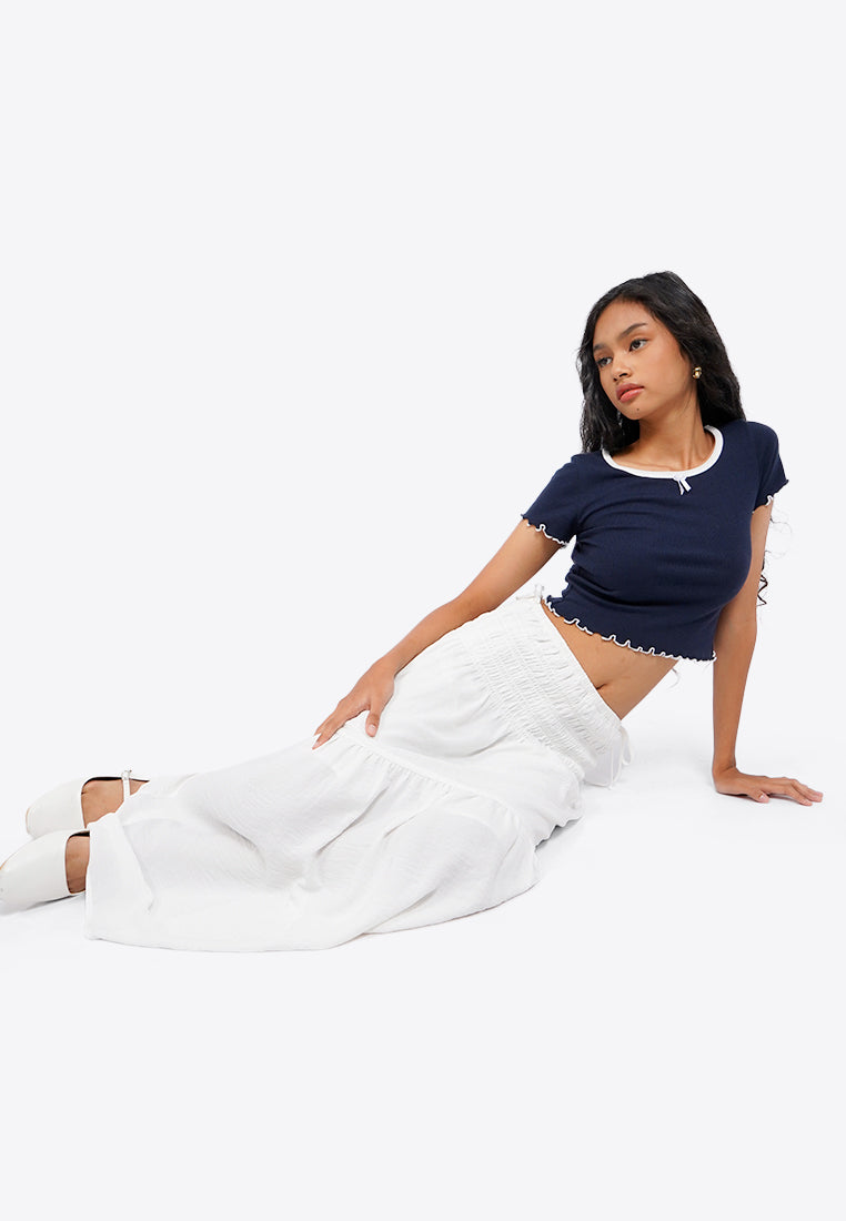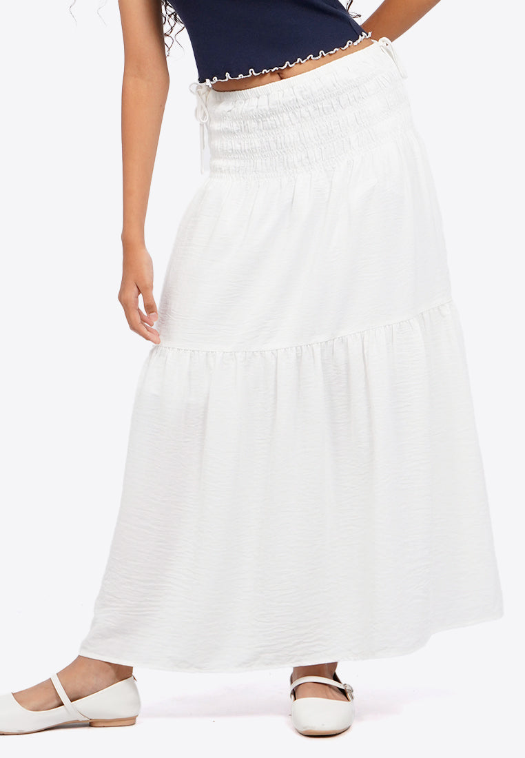 - Size Spec (cm) : Waist Relax x Hip Relax (At Smock) x Tiered Width x Bottom Curve x Smock Length x Lining Length x CF/CB Length