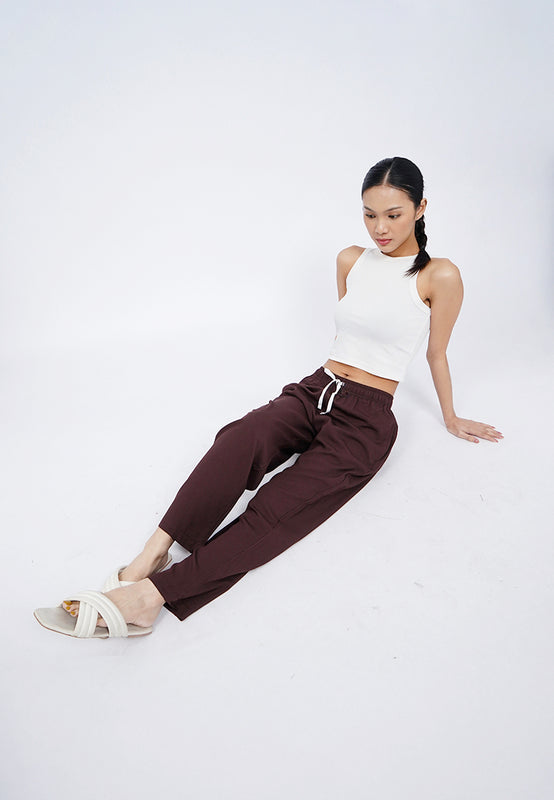 - Elastic waist with contrast drawstring