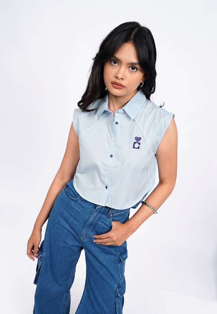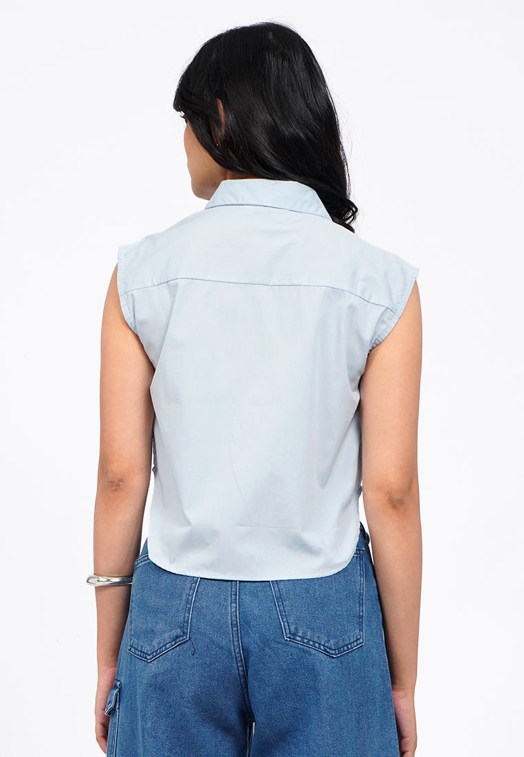 Sleeveless Button Up Crop Shirt