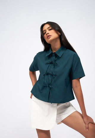 Ribbon Detail Short Sleeve Shirt