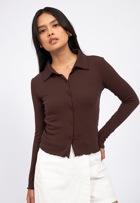 Button Up Long Sleeve Rib Top