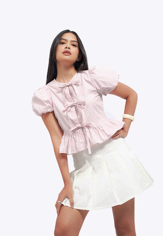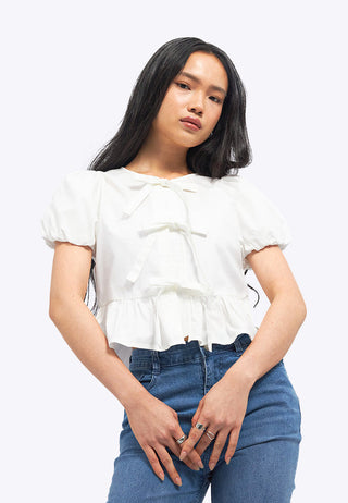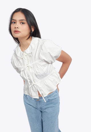 Puff Sleeve Blouse with Front Tie
