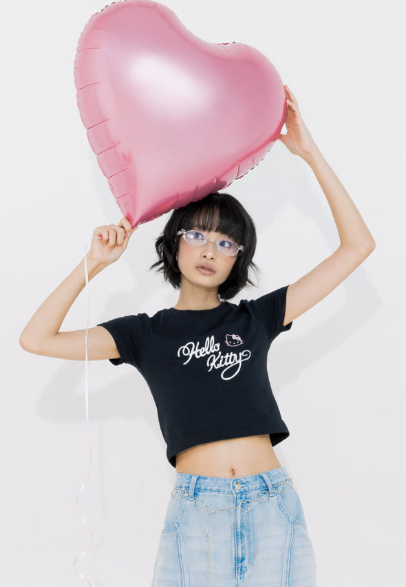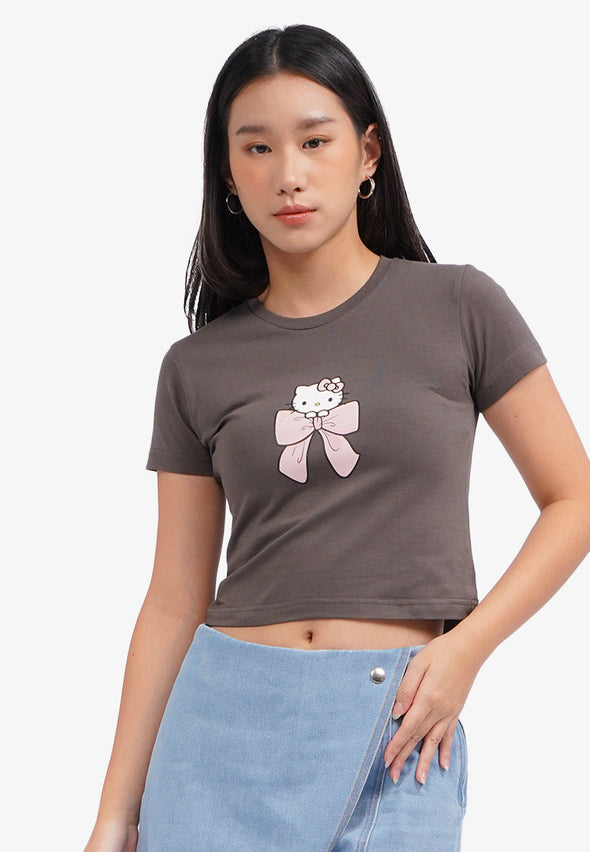 Hello Kitty Fitted Graphic Crop T-Shirt Dark Grey