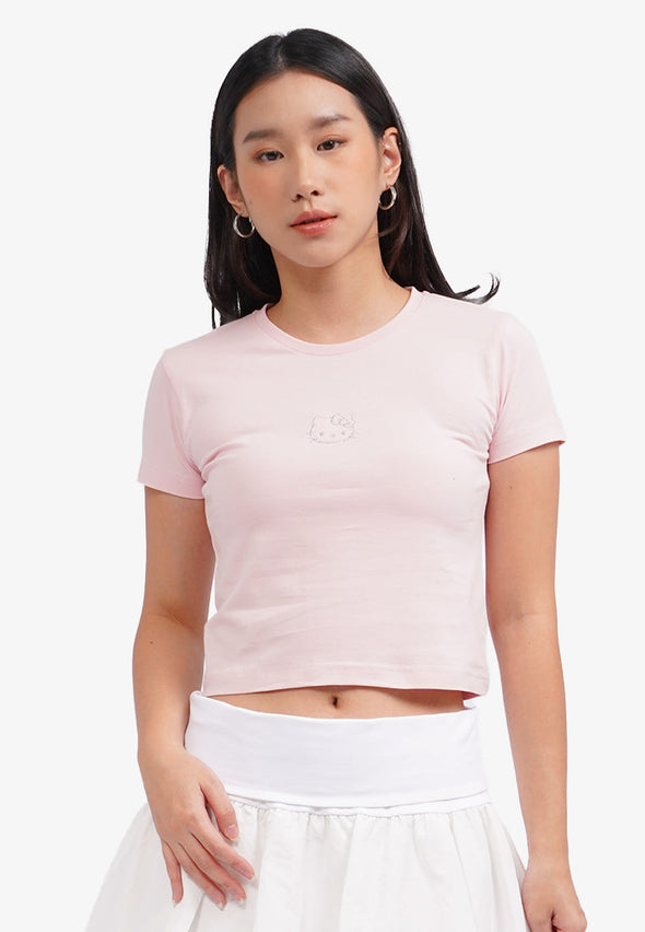 Hello Kitty Fitted Graphic Crop T-Shirt Pink