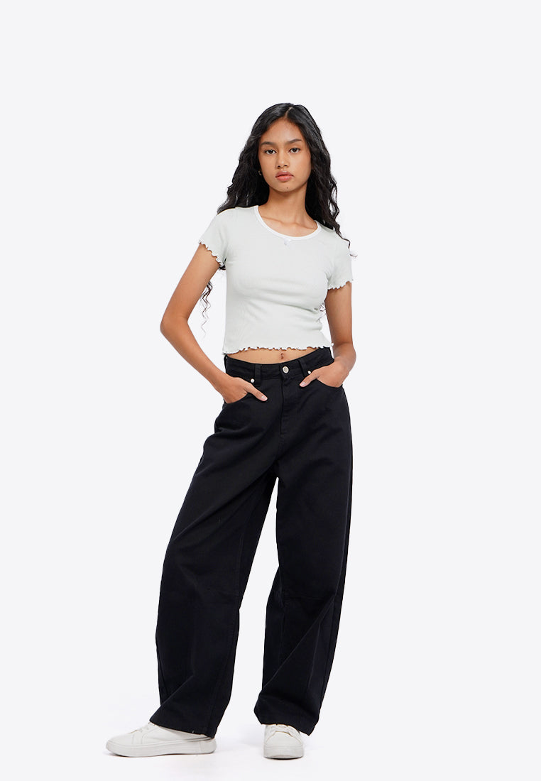 - Atasan crop lengan pendek