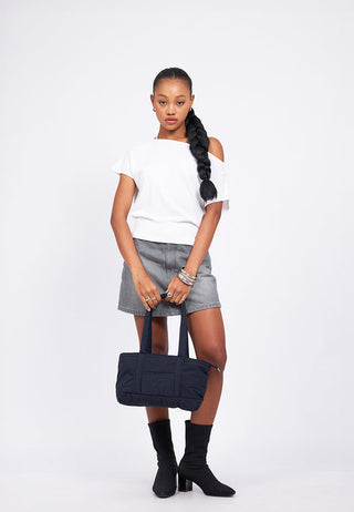 Navy Puffy Tote Bag
