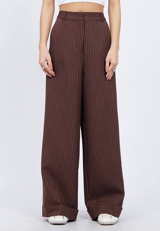 Wide Leg Roll Up Stripes Pants