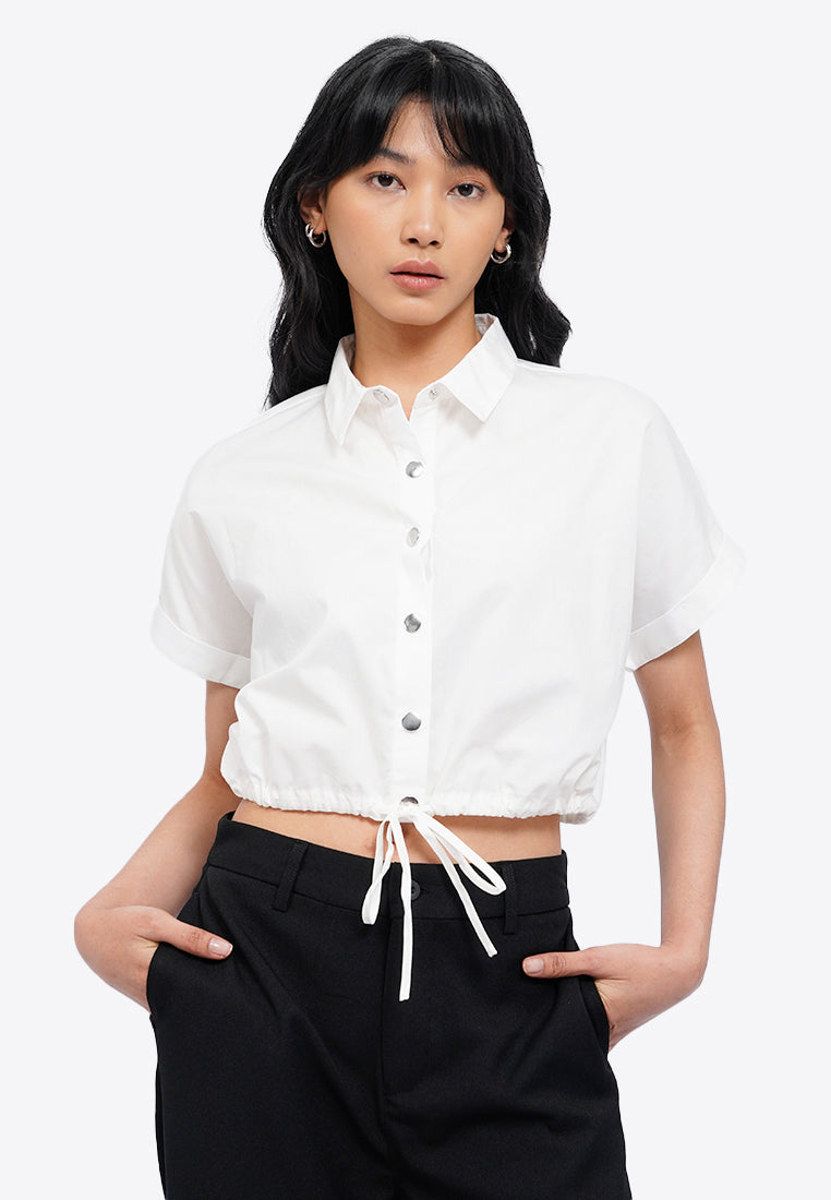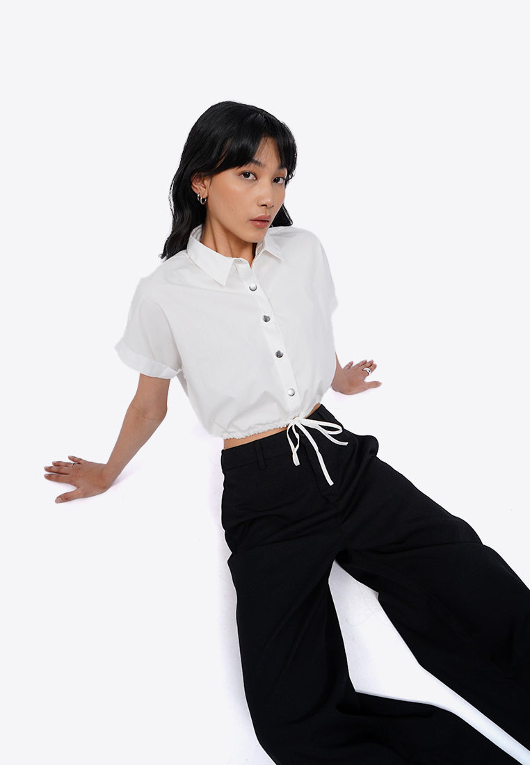 Crop Blouse with Drawstring Waist