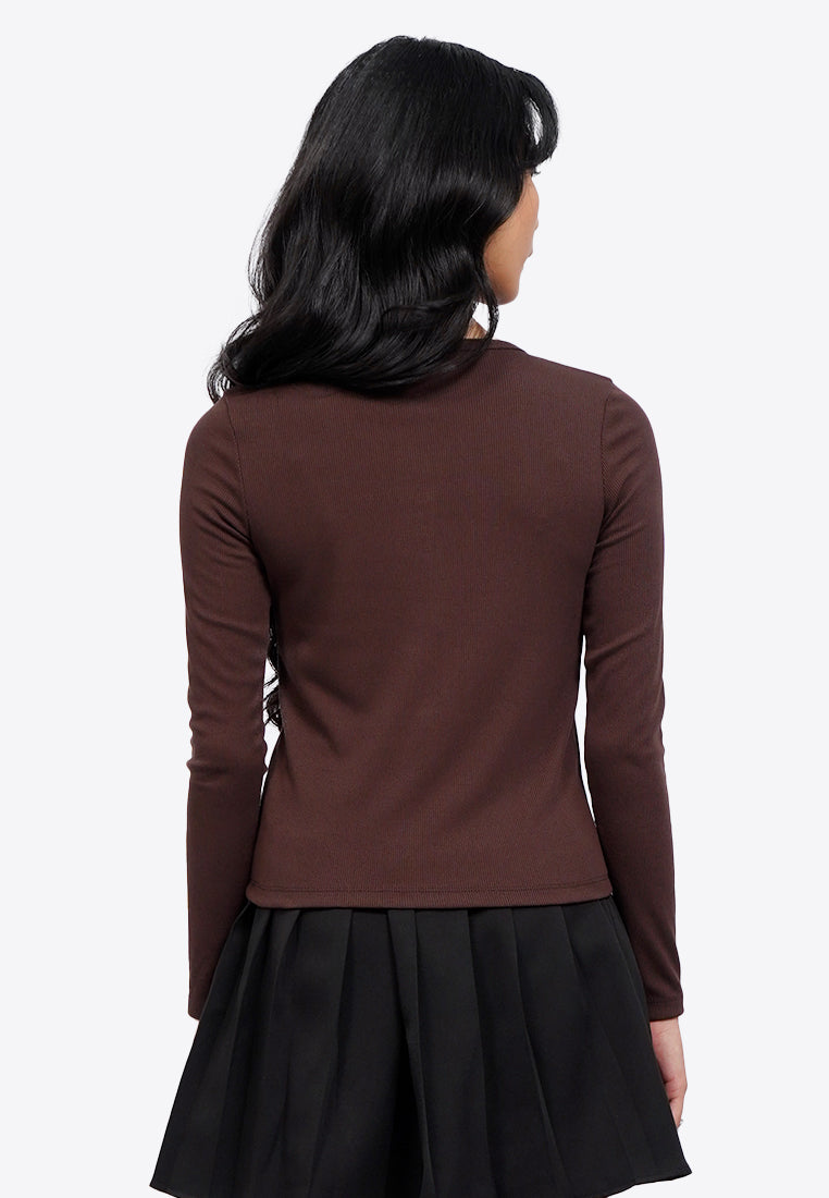 Henley Ribbed Long Sleeve Top