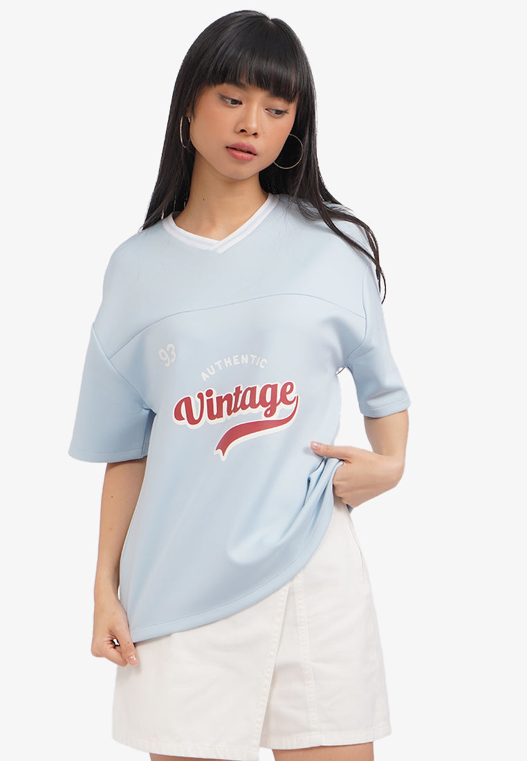 Oversized V-Neck T-Shirt L.Blue