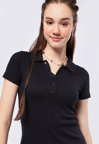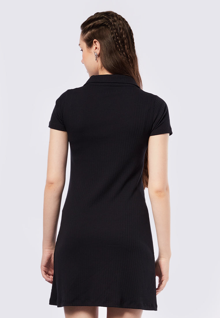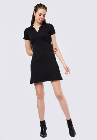 Rib Short Sleeve Polo Mini Dress