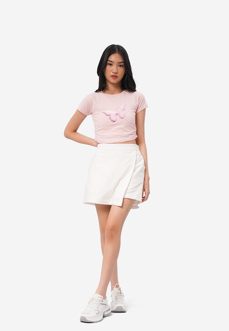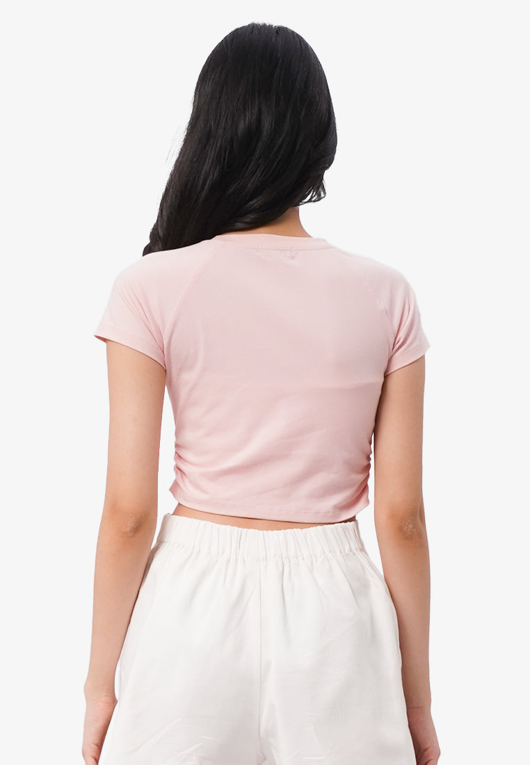 Side Ruched Raglan Graphic T-Shirt L.Pink
