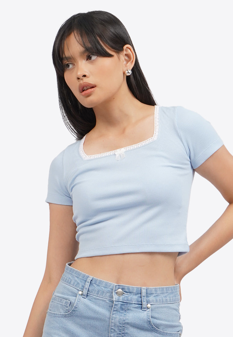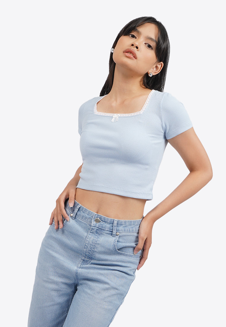 Square Neck Lace Crop Top