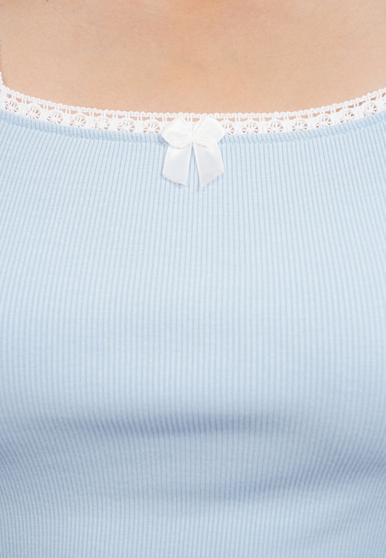 - Laced square neck with ribbon details